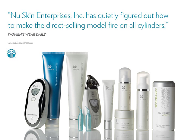 Nuskin là Cty dẫn đầu trong ngành công nghệ chống lão hóa với các dòng sản phẩm Nuskin, mỹ phẩm Nuskin cao cấp như máy massage mặt công nghệ Galvanic, máy massage bụng Body Spa, bộ chống lão hóa ageLOC Transformation, bộ điều trị nám và làm sáng da Tri Phasic White, bộ điều trị da lão hóa Nuskin 180, bộ trị mụn Clear Action, viên chống chảy xệ, căng da mặt Tru Face Essence Ultra... dòng thực phẩm chức năng Pharmanex như LifePak Nano, ageLOC Vitality, ageLOC R2, Tegreen97, ReshiMax, Marine Omega...