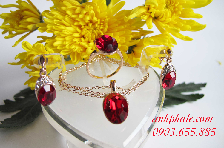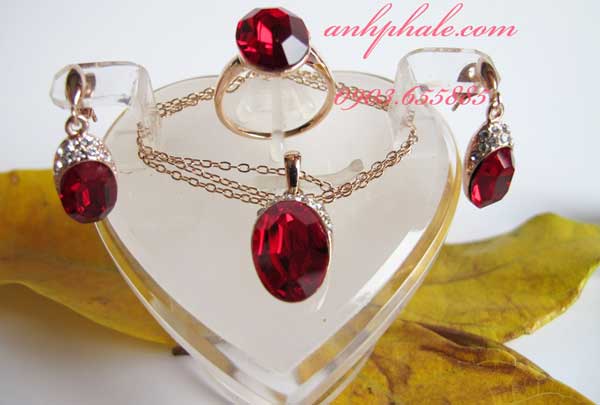 Bộ trang sức màu cực đỏ, cực chất,giá cả phù hợp. gồm vòng cổ,nhẫn và hoa tai. Sang trọng và qúi phái dành cho phái đẹp.