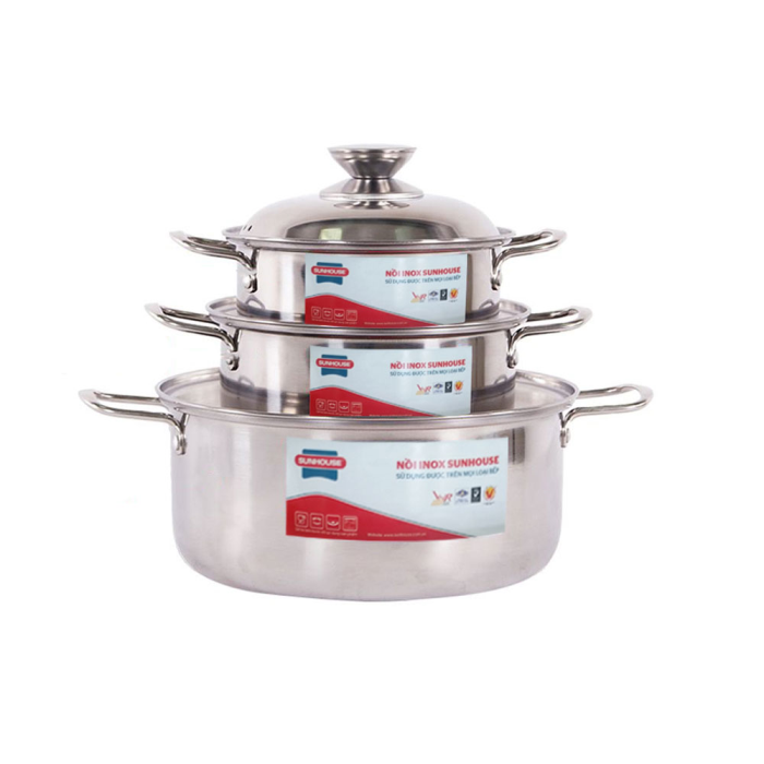 BỘ NỒI INOX 3 ĐÁY SUNHOUSE SH895